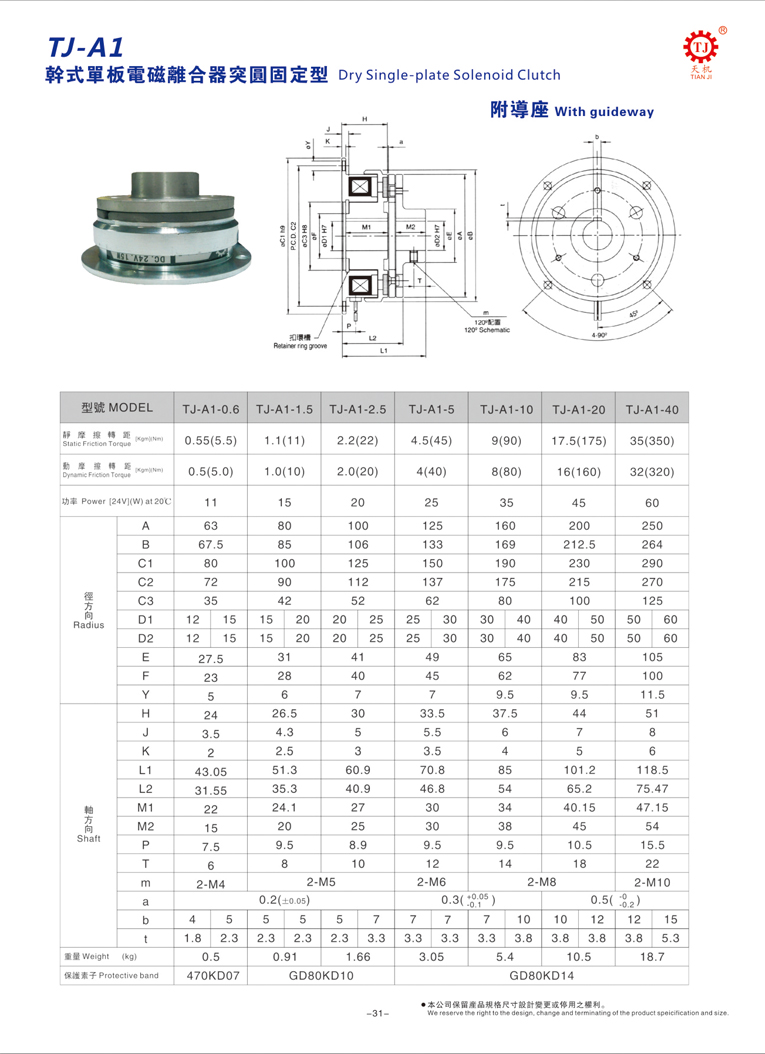 東莞天機傳動(臺灣天機牌)電磁離合器生產(chǎn)廠家制造銷售的單片電磁離合器又稱突圓型電磁離合器,對應(yīng)的型號是TJ-A1,主要由:軸承、線座、轉(zhuǎn)子、鐵片以及導座組成,其在傳動起的主要作用是啟動、傳送速度以及傳送方向等。廣泛應(yīng)用于機床、卷線機、紙箱機、印刷機、木工機、制紙機、沖床機、制袋機等自動化機械領(lǐng)域。